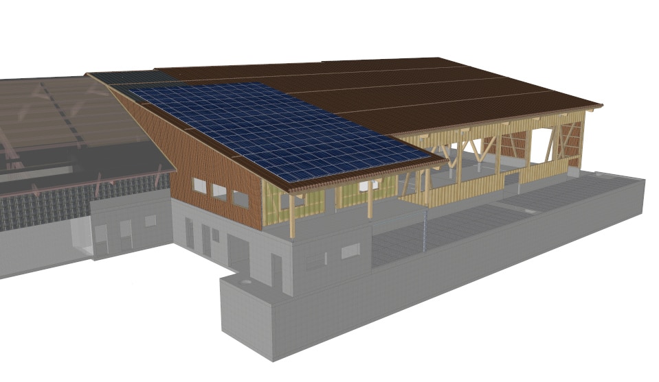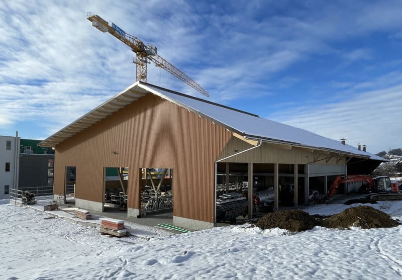 Erbrachte Leistung: Ausführungsplanung, Baubegleitung, Montagebau in Holz, Bedachungen, Gerüstungen, Photovoltaikanlage