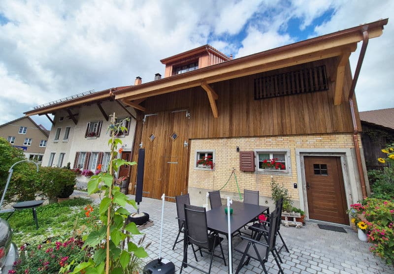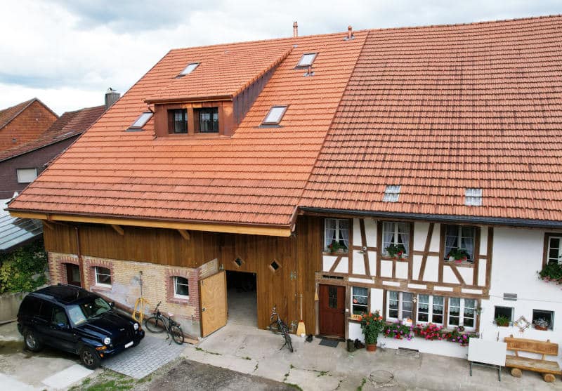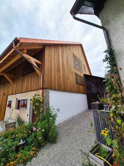 Der Scheunenteil wurde bis auf die Fundamentplatte abgebrochen und ersetzt. Hier konnte eine schöne grosse Scheune mit einem Wohnraumausbau entstehen.
