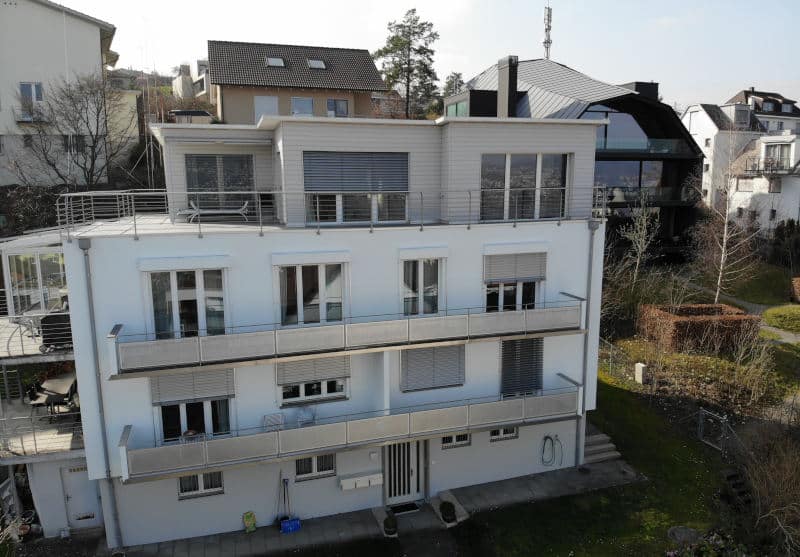 Projekt: Mitten in Thalwil an aussichtsreicher Hanglage wurde das Attikageschoss des Mehrfamilienhauses um wertvollen Wohnraum erweitert und die Dachkonstruktion modernisiert. Das Seepanorama, welches allgegenwärtig ist, steht immer im Vordergrund der Raumanordnung.