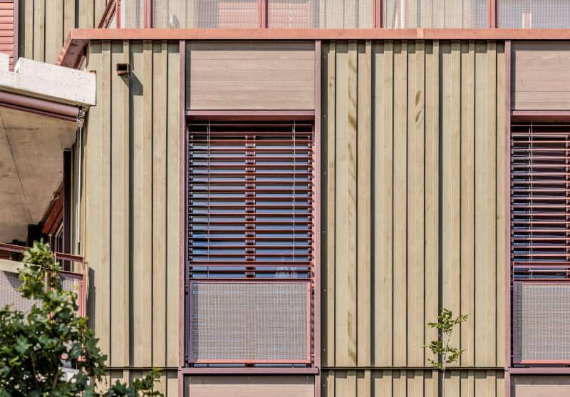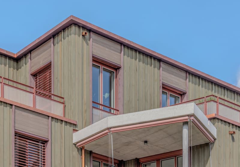 Die Bauweise ist eine Hybridkonstruktion, bei welcher die innere Struktur in Massivbauweise und die Aussenwände in Holzelementbauweise mit integrierter Wärmedämmung erstellt wurden. Die Fassade aus druckimprägnierter Holzverkleidung gibt dem Gebäude den architektonischen Ausdruck.