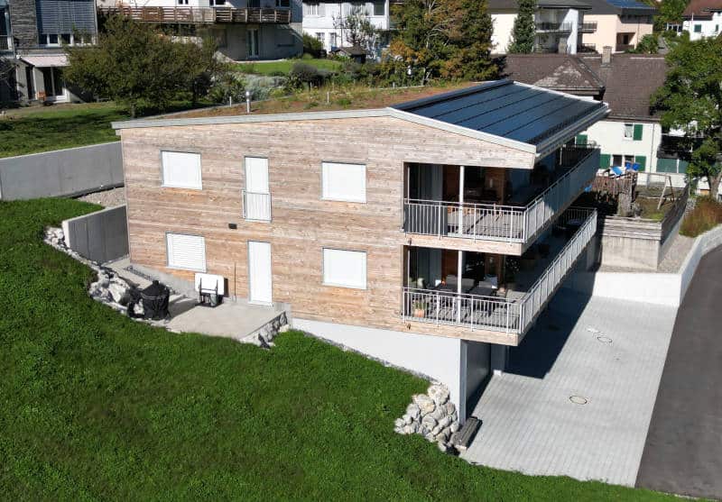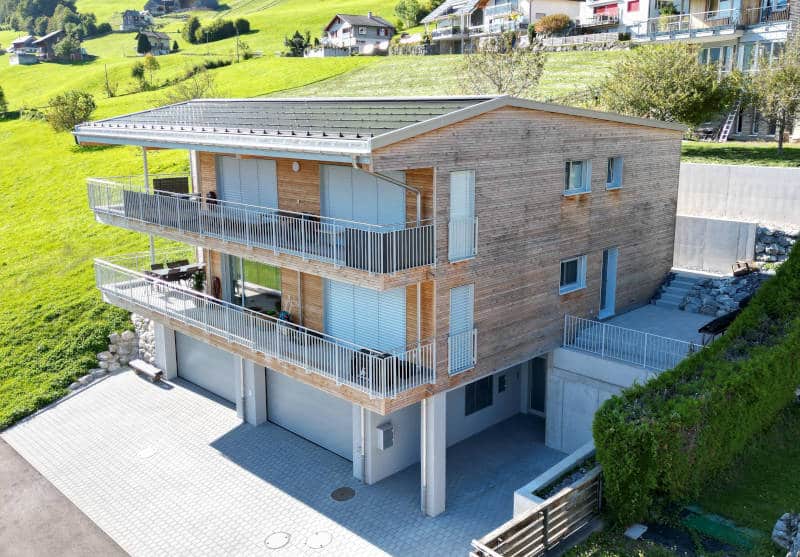 Projekt: Im sonnenverwöhnten Amden durften wir das oberste Geschoss dieses Mehrfamilienhauses in Holzelementbauweise und einer Binderkonstruktion planen und realisieren. Unsere Fachleute haben die Gebäudehülle mit Wärmedämmung und einer unbehandelten Holzfassade aus Douglasie verkleidet. Das verleiht dem Wohnhaus mit wunderbarer Südlage und Aussicht auf die Bergwelt und den Walensee sein charakteristisches Aussehen.
